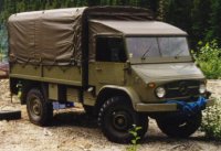 1972 The UNIMOG range further updated and rationalised: U34, U52, U66, 84, Chassis with 90 and 100 DIN/hp engines. Also available are 36, 60, 90 and 110 DIN - powered traction-heads (each one, in effect, a UNIMOG cut off behind the cab) as front-wheel-drive power units for special vehicles, with ground-level loading for example. UNIMOG S - a 1.5 ton truck suitable for off-the-road operation becomes available 82 and 100 DIN/hp petrol engines. Premiere of the MB-trac 65/70 at the German Agricultural Association's trade fair.